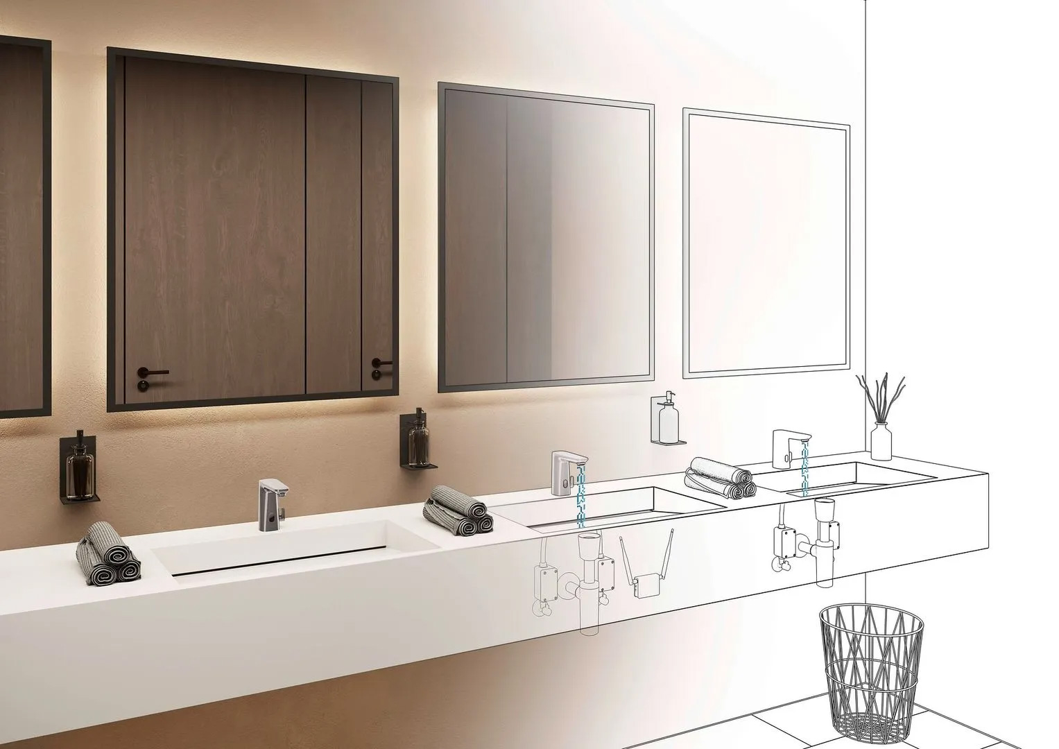 - Wir übernehmen und koordinieren alle Arbeiten – nicht nur Badplanung und Sanitärinstallationen, sondern z. B. auch Trockenbau, Elektro, Lichtgestaltung, Fliesen, Malerarbeiten, Raumausstattung und Endreinigung
